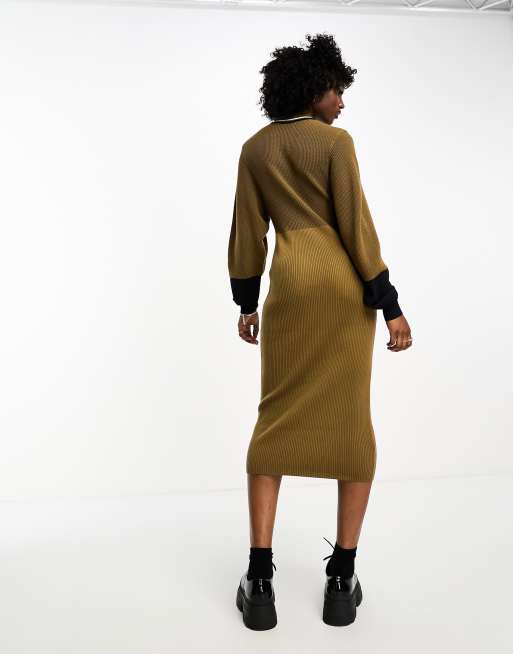 FRED PERRY フレッドペリー Open-Knit Shirt Dress Fred Perry open knit mock neck dress in shaded beige | ASOS